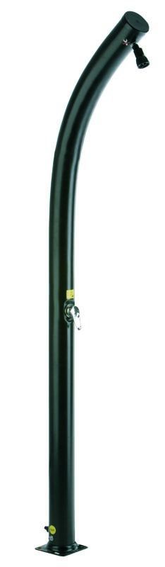 Соларен душ с кръгла форма и основно тяло от PVC в черен цвят. Тялото на душа е с наклонена форма за по-добро насочване на струята.