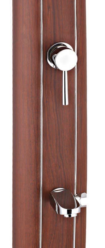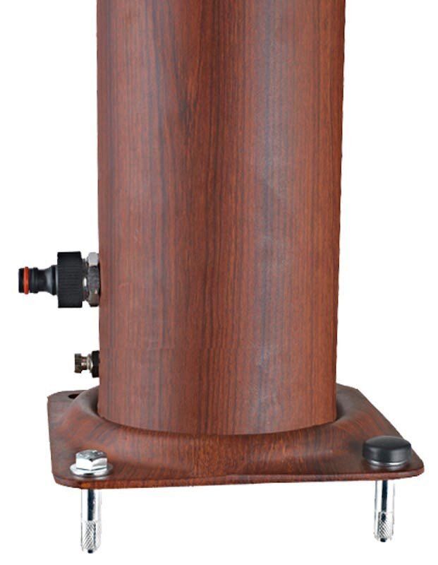 Алуминиев соларен душ с кръгла форма и декорация имитация на дърво.
