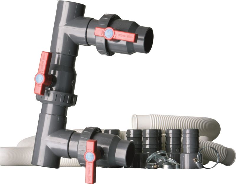 Байпасът за свързване на нагревател е необходимото междинно звено препоръчително за използване при свързване на термо помпа към басейна. Благодарение на него е възможно водата да се насочва през термо помпата, когато се извършва подгряване на водата и да я заобикаля, за да я предпаза от замърсяване, когато не се използва.