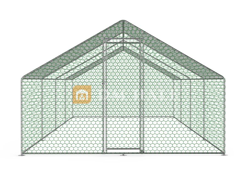 Пълно покритие с PVC телена мрежа Целият кокошарник е обвит с здрава телена мрежа с ПВЦ покритие, дебелина на телта 1.0 мм и размер на отворите 30x40 мм – осигурява максимална защита от хищници и добра вентилация.